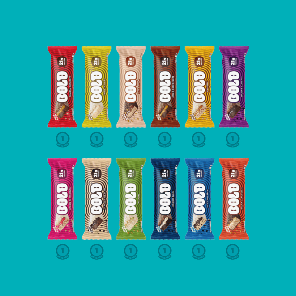 Caixa de barra de proteína BOLD Mista, a mais queridinha da comunidade! Contém todos os sabores de BOLD, salva com muito sabor e 21g de proteína. Lanche fonte de proteína perfeito para a correria do dia a dia.